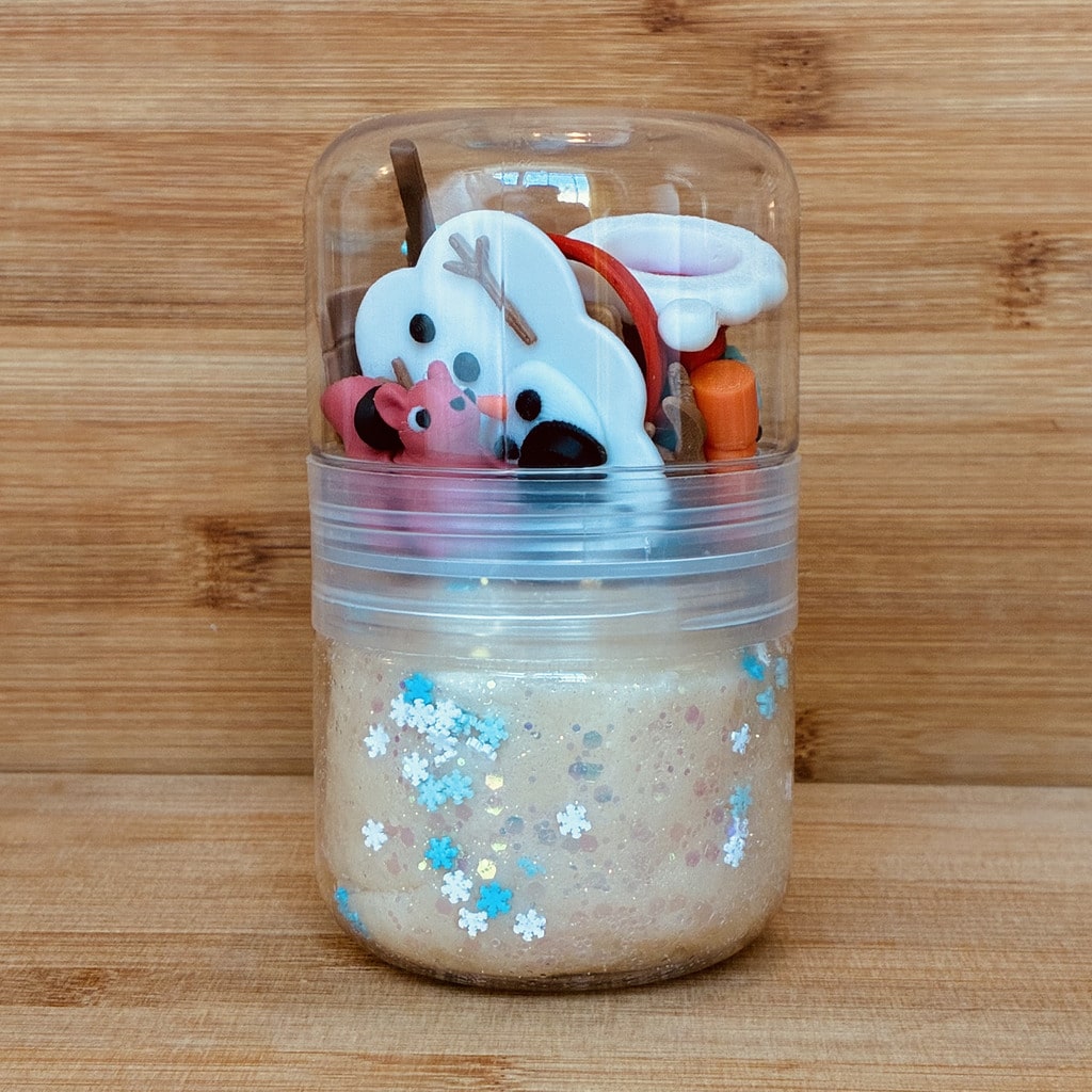 Everything kids need to roll, stack, and decorate their own snowy friends — in one compact jar!