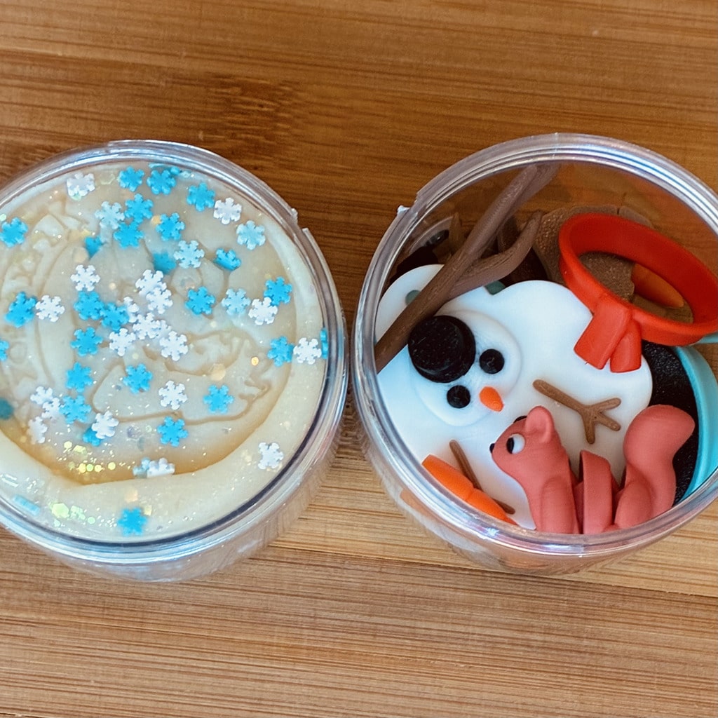 ❄️ 260g of Play-Dough – soft white dough scented with peppermint, filled with glitter & snowflake sprinkles