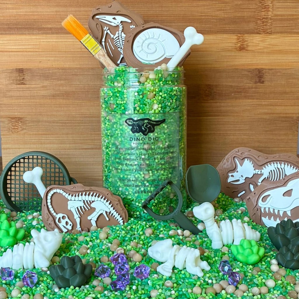 This immersive sensory set invites little explorers to step into the shoes of paleontologists — brushing, scooping, and digging their way through a fossil dig site. With a textured sensory mix, hidden fossils, bones, and dino skeletons, every jar is packed with surprises waiting to be discovered.