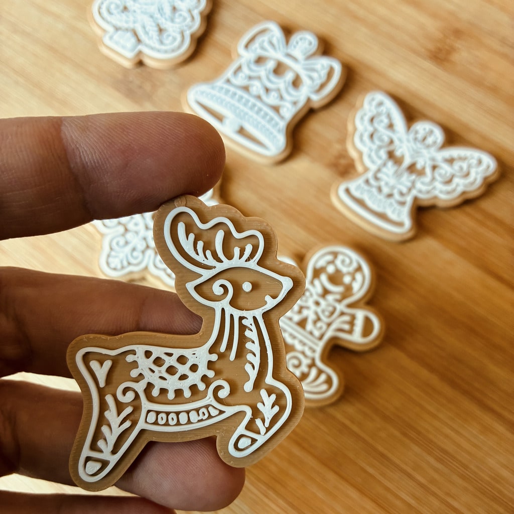 🍪 6 Iced Cookie Shapes – Christmas tree, bell, angel, reindeer, snowflake, and gingerbread man
